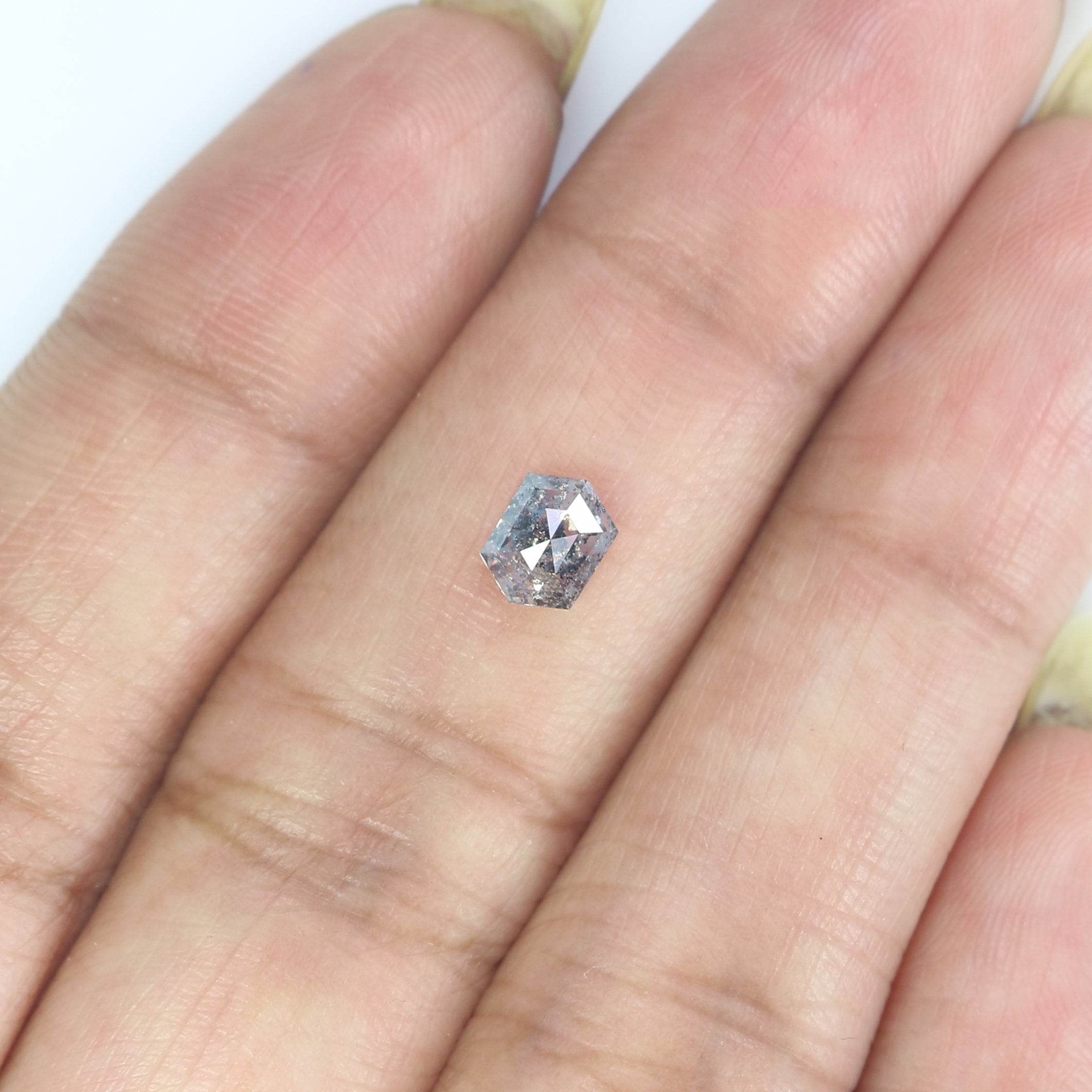 0.62 CT Natural Loose Hexagon Shape Diamond Salt And Pepper Hexagon Diamond 5.70 MM Black Grey Color Hexagon Shape Rose Cut Diamond QK2593
